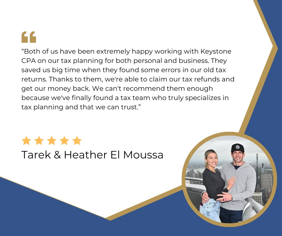 Founders ofĀ Keystone CPA, Inc., an award-winning CPA firm helping clients nationwide to save on taxes using proactive tax planning strategies.